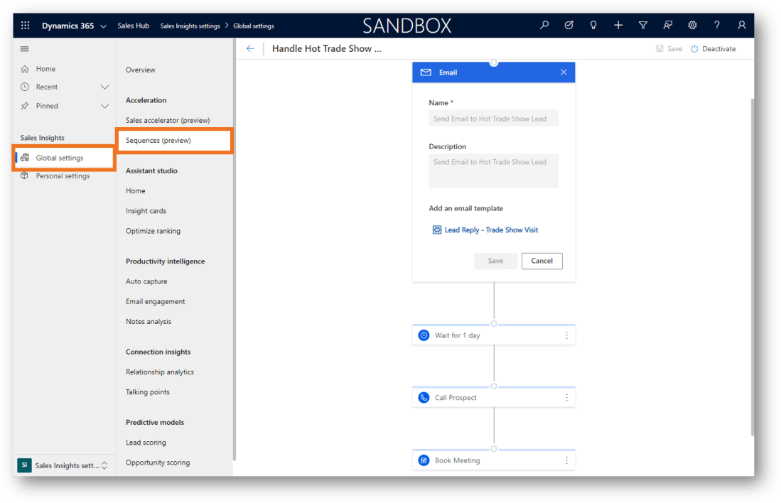The new concept of Sequences in Dynamics 365 Sales Insights help sales managers enforce best practices by introducing a set of consecutive activities for sellers to follow during the course of their day. A manager can connect sequences to leads and opportunities that appear in a seller's work queue, to help sellers prioritize activities to … Continue reading Focus on the next best activity with your customers