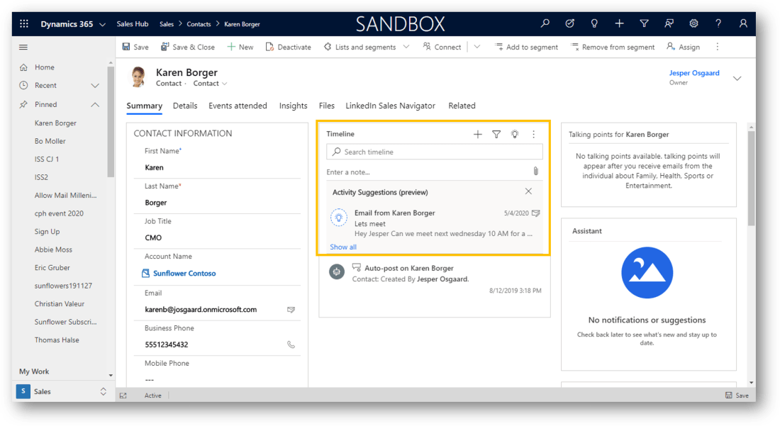 Premium auto capture helps salespeople focus on generating revenue instead of spending their time updating Dynamics 365 Sales data and logging every customer-related activity. In addition to activity suggestions based on capturing emails and meetings, premium auto capture also provides suggestions for creating new contacts Think of a scenario in which a contact we work … Continue reading Easy logging of customer-related activities with Premium auto capture
