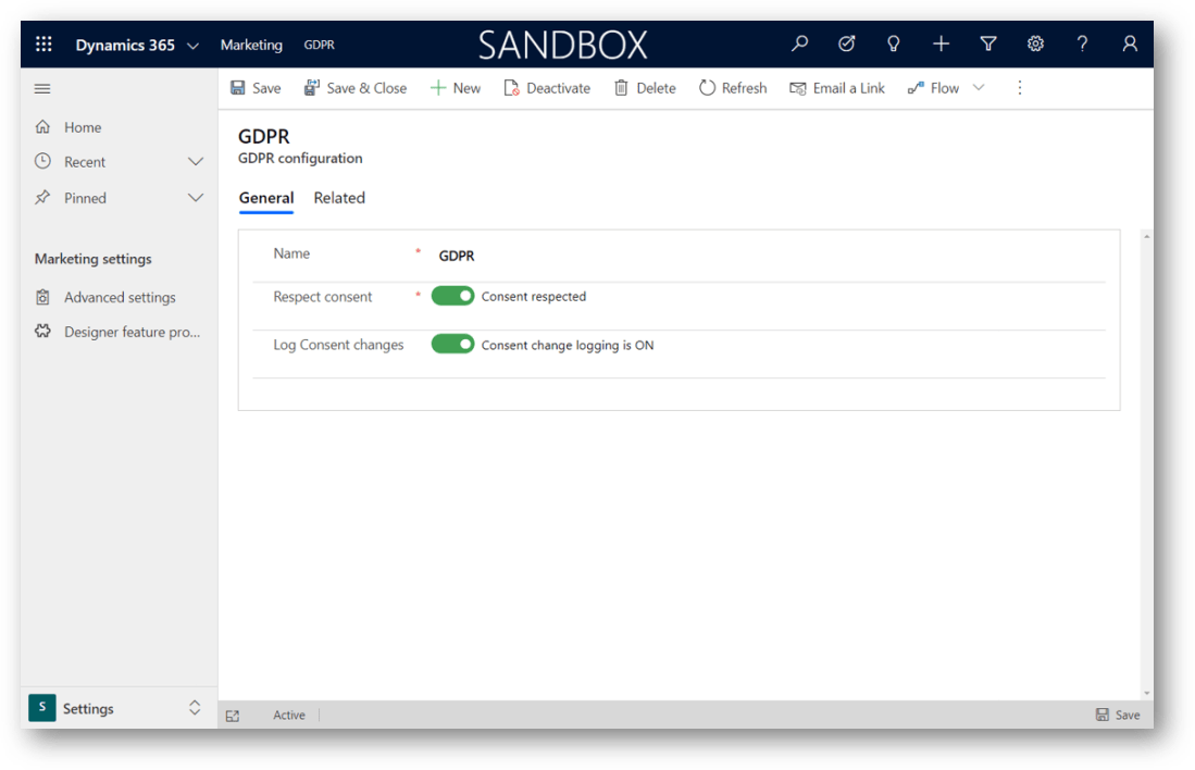 You can easily allow contacts to set their own consent level using a subscription center form on a marketing page. From time to time, you may be asked to demonstrate that your organization complies with the GDPR regulations. Dynamics 365 Marketing provides several tools to help you do this. Use the Settings > Advanced Settings … Continue reading Demonstrate GDPR compliance in Dynamics 365 Marketing