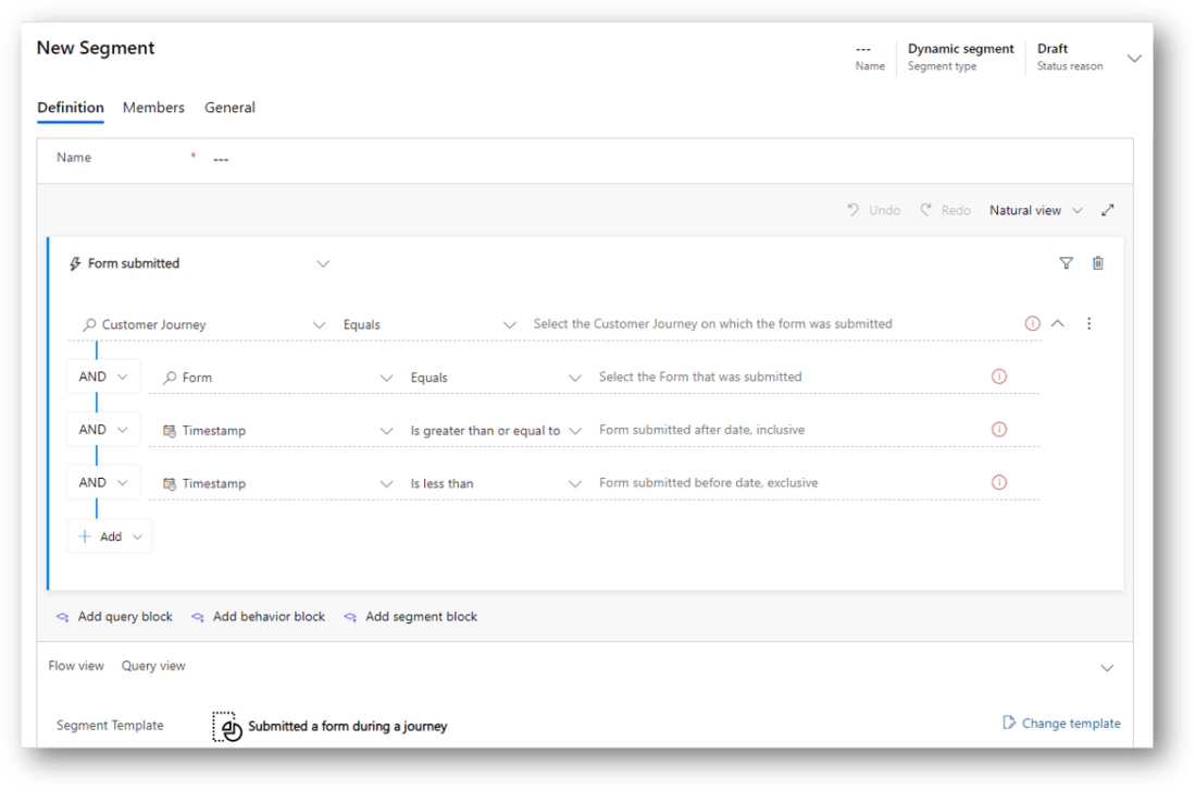 Dynamics 365 Marketing comes with a collection of standard Segment templates designed to help get you started creating a variety of common segments. Each segment template provides an initial query structure, but you'll usually need to finish the query by supplying the values you are looking for and/or by adding new rows and groups as … Continue reading Learn common techniques for designing your own segments